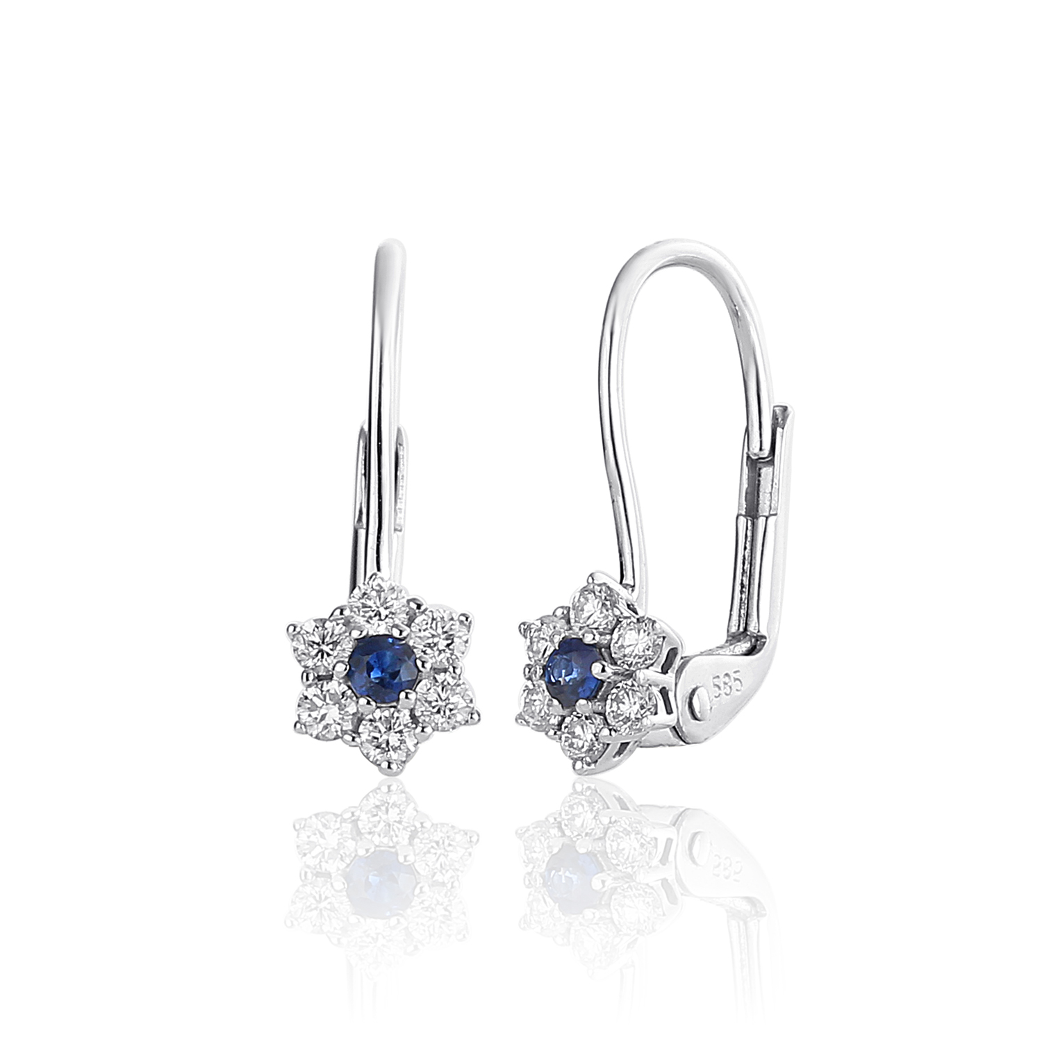 Popis produktu: Visací náušnice Florisia I, bílé zlato s brilianty a safíry