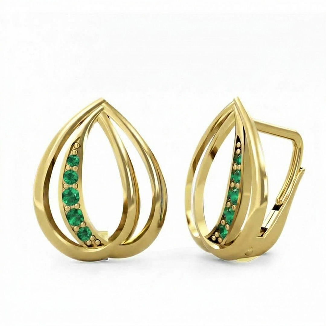 Popis produktu: Visací náušnice Lacrima, žluté zlato se zelenými zirkony