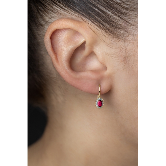 Popis produktu: Visací náušnice Rosamund, kombinované zlato s brilianty a rubíny