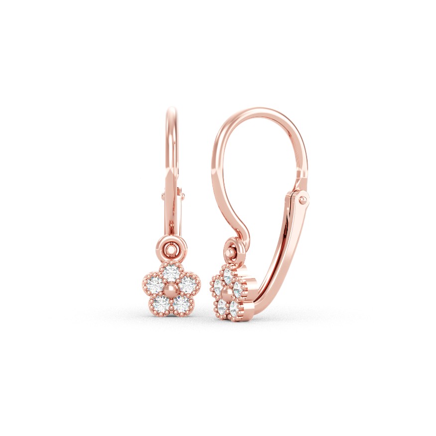 Popis produktu: Zajímavé dětské náušnice Dalie, růžové zlato a zirkony