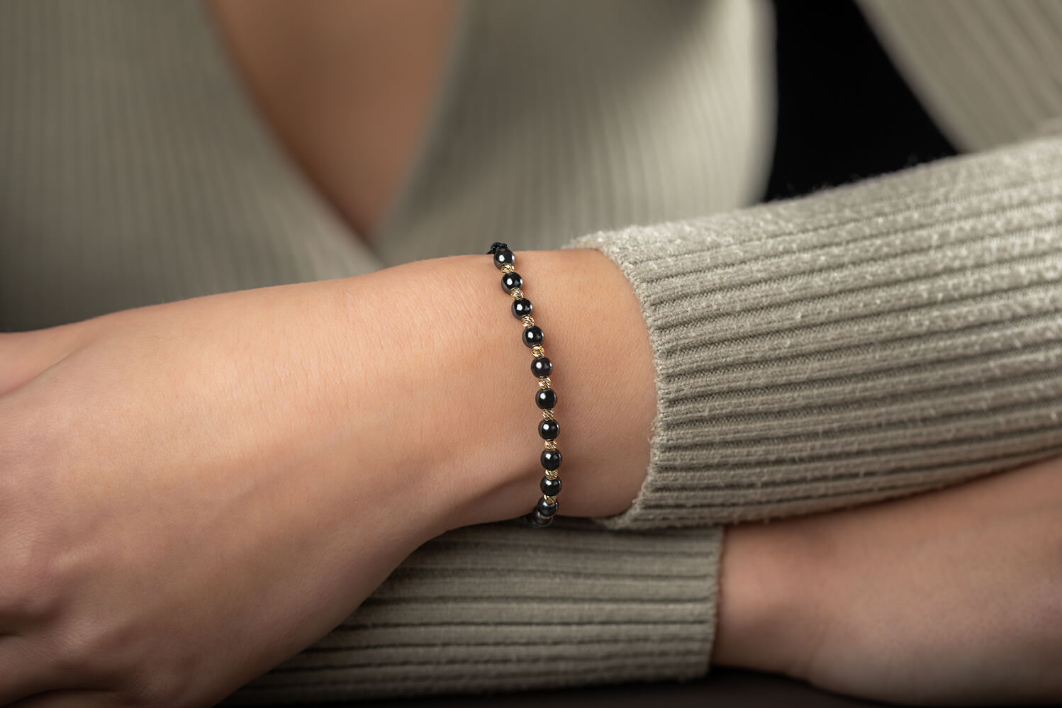 Popis produktu: Zajímavý náramek Dernel Beads, žluté zlato a hematit