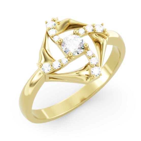 Popis produktu: Zajímavý prsten Lyrin, žluté zlato se zirkony