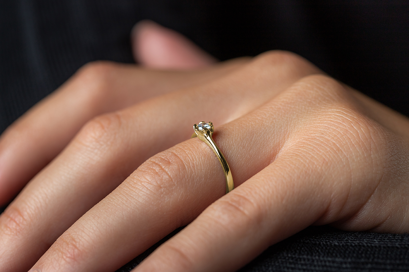Popis produktu: Zajímavý zásnubní prsten Jess, žluté zlato a briliant