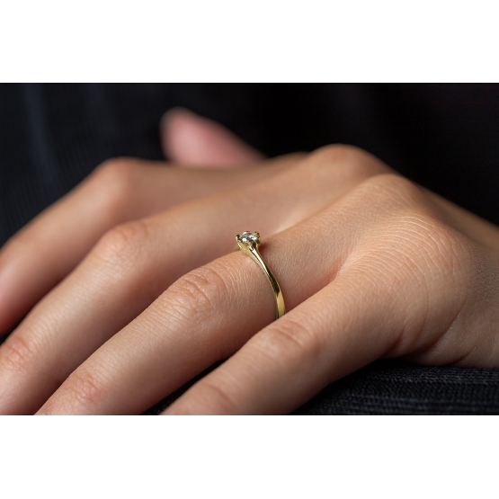 Popis produktu: Zajímavý zásnubní prsten Jess, žluté zlato a briliant