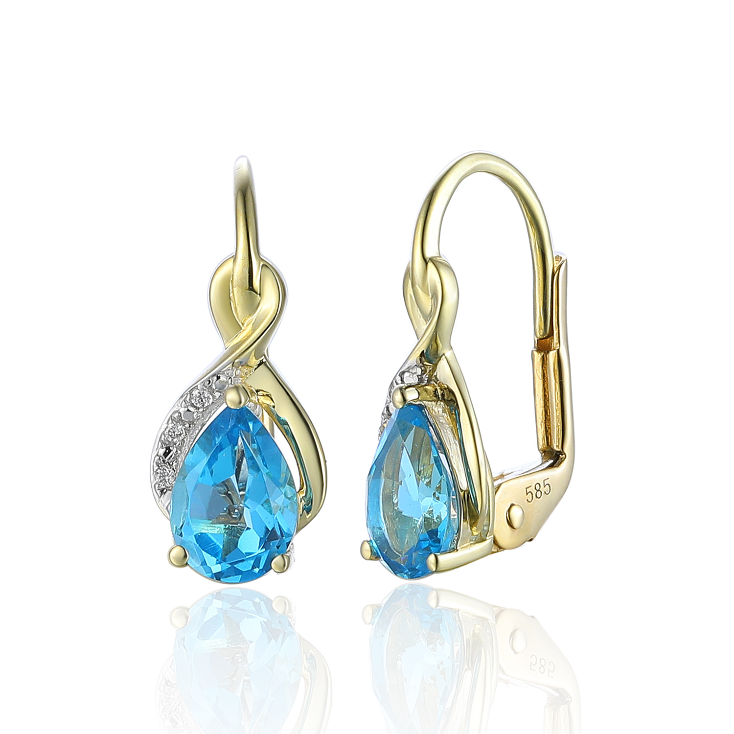 Popis produktu: Zářivé náušnice Merida, kombinované zlato s brilianty a modrými topazy (blue topazy)