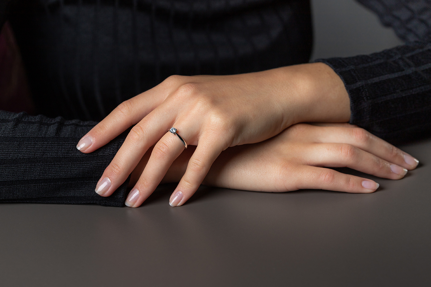 Prsten je vyrobený z bílého 14karátového zlata. Více