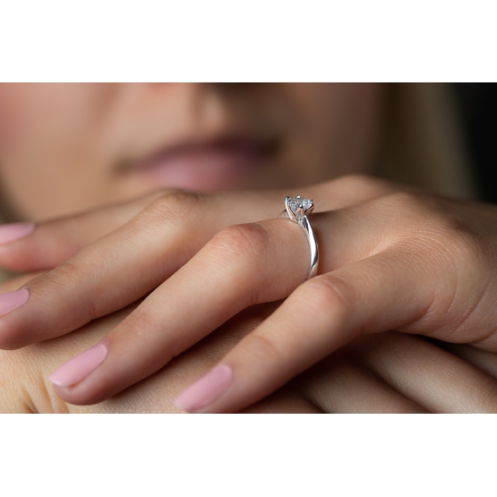 Popis produktu: Zásnubní prsten Lucille, bílé zlato s výrazným zirkonem