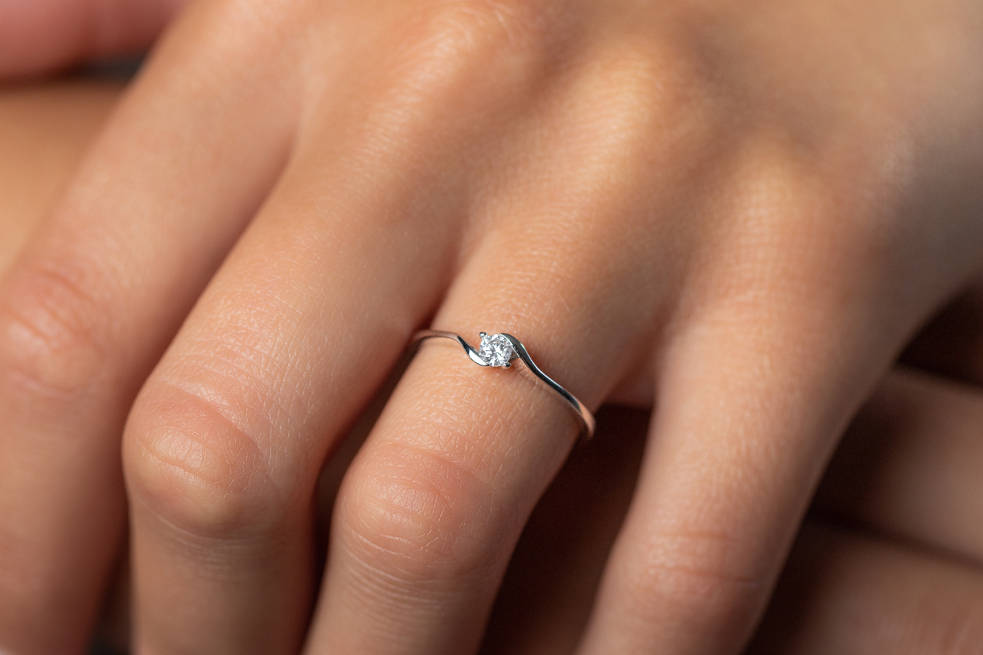 Zásnubní prsten Tanya, bílé zlato s briliantem
